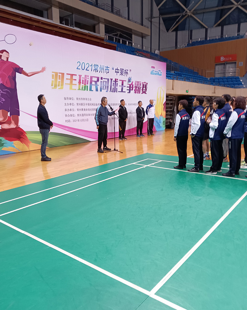 2021年10月23日,常州市舉辦“中策杯”民間羽毛球爭(zhēng)霸賽,常州新區(qū)中策機(jī)械設(shè)備有限公司為主辦單位之一,比賽開始之前由公司代表丁總發(fā)表了講話,宣布比賽開始。